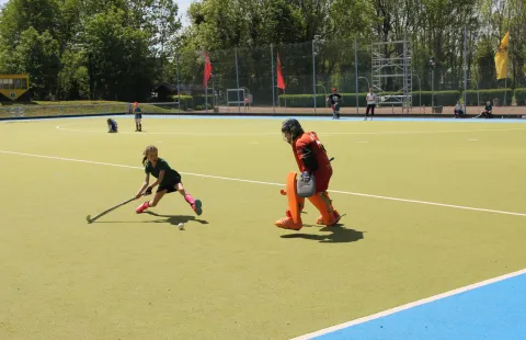12:41 Uhr Anpfiff...unser Maskottchen liegt wieder hinter Florentine im Tor, die mitgereisten Spielerinnen der D-Mädchen, Emma-Sonja-Bianca + Schwester Tiffany feuern unsere Mannschaft an und wir sind der Jenaer Mannschaft wirklich fast immer einen Schritt voraus...Greta, Leona und Sophie verteidigen schon sehr stark gegen das Aufbauspiel der Gegnerinnen und rutscht mal ein Ball durch ist Carla wie besprochen zur Stelle! Belohnt werden wir mit dem ersten Penalty, den Carla sicher verwandelt! Im direkten Gegenzug fällt das 1:1...was war los? Niemand weiß es!!! Pass Carla auf Leona...Zuspiel auf Sophie..Schläger unten!...haha...2:1! Anstoß...wir greifen an, Fuß im Kreis Jena...Penalty für uns durch Leona...3:1! Pause! Die brauchen wir Alle!