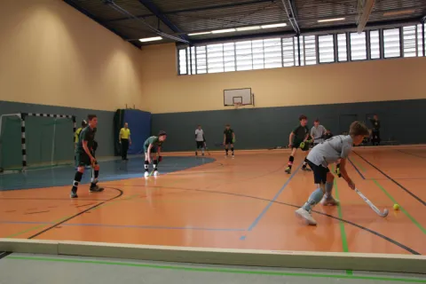 Zuerst geht es gegen HCLG Leipzig. Leider geht es sehr schwach los und wir kommen nicht ins Spiel. Die erste kurze Ecke führt auch gleich zum 0:1. Dann bekommen wir auch endlich den Ball Richtung HCLG-Tor und eine kurze Ecke, die aber gehalten wird. Es läuft weiter nicht gut und nach einem Fehler folgt das 0:2. HCLG ist in allen Belangen besser und aggressiver. Dann kurz vor Schluss der 1. Halbzeit ein starker Durchbruch an der rechten Seite und aus sehr spitzem Winkel kommt der Anschlusstreffer zum 1:2. Die 2. Halbzeit beginnt wie die erste mit viel Tempo vom Gegner und den ersten guten Torchancen. Dann aber ein sehr guter Angriff auf der rechten Seite und ein super Pass in die Mitte. Das ist das 2:2! Können wir das Spiel jetzt drehen? Es sind noch 7 Minuten zu spielen. Es kommt aber wieder fast nur HCLG und die Tore 3:2 und 4:2 und weiteren Chancen. Da war leider nicht mehr drin. Wir müssen uns steigern.