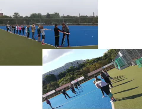Die Kinder der Klassenstufe 4 der Fachkurse M und N haben die Möglichkeit, den Sport Feldhockey unter fachkundiger Anleitung kennenzulernen und erste Grundtechniken zu üben.
