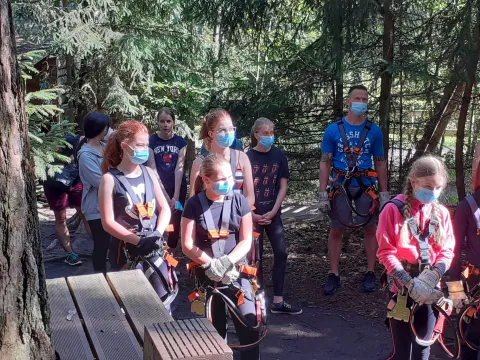 Nachdem der erste Termin durch Starkregen buchstäblich ins Wasser gefallen ist, konnten heute 18 Mädels bei bestem Kletterwetter den Wald in verschiedenen Ebenen erkunden. Nach dem Anlegen der Kletterausrüstung, einer ausführlichen Einweisung und dem Vorklettern ging es dann in die unterschiedlichen Parcours, deren Schwierigkeitsgrade schon sehr unterschiedlich waren. Während einige Erstkletterinnen den lauen „Spaß“-Parcours zur Festigung des gerade Gehörten nutzen, waren die erfahrenen Mädels bereits in den roten Parcours ( Fitness, Abenteuer und Gaudi ) unterwegs. Wusste Jemand mal nicht weiter oder blieb „hängen“, so waren sofort andere Mädels als Helferinnen zur Stelle und der Gaudi ging weiter. Alle kamen nach drei Stunden unverletzt und mit einem breiten Lächeln zum Treffpunkt und ich bin mir sicher, hier waren wir nicht das letzte Mal!