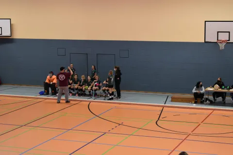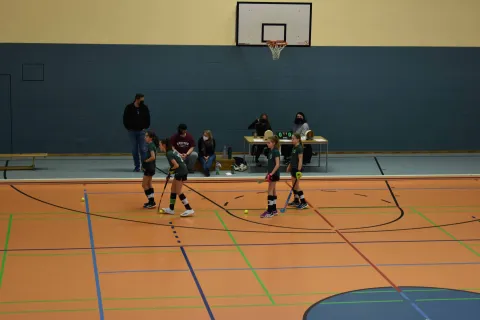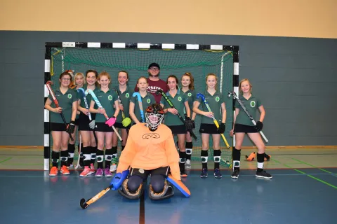 Doch so einfach ist das nicht. Selbst so ein kleiner sportlicher Wettbewerb bedarf einiger Rahmenbedingungen, beim Hallenhockey insbesondere einer bespielbaren Halle. Als wir rechtzeitig am Morgen in der Halle eintrafen, mussten wir feststellen, dass man auch hieran schon scheitern könnte. Da der schwere ledern Trennvorhang in der Halle heruntergelassen war, galt es diesen hochzufahren. Leider lag der dafür notwendige Schlüssel nicht an dem vorgesehenen Ort. Jetzt galt es Nerven zu bewahren. Ein Teil der Entourage begann mit dem Aufbau der Tore und Banden. Die Trainer versuchten unter diesen Begleitumständen das Team auf das erste Spiel vorzubereiten und der Rest mühte sich jemanden zu erreichen, der einen Ersatzschlüssel stellen könnte, was letztlich von Erfolg gekrönt war. Fünf Minuten vor dem planmäßigen Beginn hob sich der schwere lederne Trennvorhang und uns Erfurtern blieb eine Blamage erspart. Hier sei ausdrücklich lobend erwähnt, dass die telefonisch am frühen Samstagvormittag bei der Stadt Erfurt kontaktierten Mitarbeiter nicht lange fackelten und den Notdienst in Bewegung setzten.