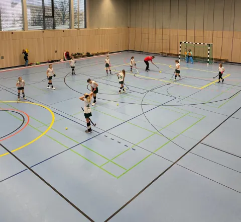 Dank unseres hauseigenen Vorbereitungsturniers, dem Krämerbrücken-Cup, und einem individuellen Wochenendtrainingslager startete die wU12 Mitte November gut vorbereitet in die neue Hallensaison. Die Gegner am ersten Spieltag waren SSC Jena, ATV Leipzig und SV Motor Meerane. Mit einer beeindruckenden Bilanz von drei Siegen aus drei Spielen und einem Torverhältnis von 11:2 legten die Mädels einen hervorragenden Grundstein für die kommende Saison. Besonders hervorzuheben sind das starke Teamplay, die solide Verteidigung und die sehr gute Verwertung der Strafecken, die maßgeblich zum Erfolg beigetragen haben.
