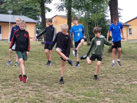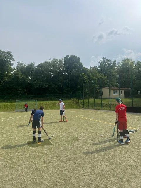Für diejenigen, die nicht mit auf dem Berg waren, hier eine kleine Zusammenfassung des Hockeycamps 2024: Der Beginn war etwas ungewohnt - Hinfahrt in Autos statt mit dem Zug, Aufbau unseres Multifunktions-Pavillons in rekordverdächtiger Zeit und die ersten 3 Tage "sturmfrei". Wir hatten den Kunstrasenplatz ganz für uns allein und so hieß es Hockey spielen, athletisch ertüchtigen, Baden gehen und auch Seele baumeln lassen nach Belieben sowie nebenbei noch Spaß bei Disko und Bowling. In dieser Zeit konnten wir am Hockeystock die nötigen Grundlagen schaffen und fokussiert mit individuellen Schwächen/Stärken der Spielerinnen & Spieler arbeiten, bevor am Wochenende Gastcoach Christian den Kindern theoretischen und praktischen Input bot. Am Sonntag kamen schließlich die anderen Vereine auf der Feuerkuppe an und es wurde spannend… Wir teilten unsere nun komplette Teilnehmerschaft in Trainingsgruppen ein, um unsere Kids, immer nach gemeinsamer Erwärmung mit Uwe, auf leistungsgerechtem Niveau trainieren zu können. Neben dem nun vermehrt taktischen und technisch anspruchsvolleren Training kooperierten die anwesenden Vereine und trugen täglich Testspiele gegeneinander aber auch im Mix innerhalb der jeweiligen Altersklassen aus. Begleitet wurde der Hockeypart außerdem von einem Konditionsprogramm aus bspw. Kornfeldrunden, Intervall-, Team- und Staffelläufen. Aber auch in den Pausen waren unsere Teilnehmerinnen und Teilnehmer aktiv, u.a. auf dem Team-Bike, beim Mini-Golf, Tischtennis und Wikingerschach. Die zweite Woche war bestückt mit zahlreichen zusätzlichen Highlights... Am Montag die (gruselige) Nachtwanderung inszeniert von den Trainern, am Dienstag das Ablegen des DOSB-Sportabzeichens durch unsere Hockeykinder (von allen mit Bravour gemeistert), am Mittwoch das Austragen des 2.Kuppen-Cups, bei dem unsere Kids im 3v3-Format spielen und dieses Jahr die Young Boys Wehrstedt als Sieger hervorgingen. Am Freitag verschlug es dann einige Auserwählte bei der berüchtigten Neptun-Taufe ins kühle Nass, jedoch war nachmittags auch nochmal das Durchhaltevermögen aller Kinder beim Triathlon gefragt. Am Abend veranstalten wir traditionell unser kleines Straßenfest, wobei der Grill angeschmissen wurde und die großen Jungs für Entertainment sorgten, bevor man sich am nächsten Morgen schweren Herzens von der Feuerkuppe verabschieden musste. Danke an alle Kinder, Betreuer und Trainer für dieses vielseitige, erfolgreiche und freudvolle Hockeycamp. Wir sehen uns im nächsten Jahr!