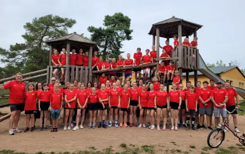 Am 09.08.2023 machten sich über 40 Kinder, Betreuer*innen und Trainer bei wenig sommerlichem Wetter auf dem Weg zum KIEZ Ferienpark Feuerkuppe.