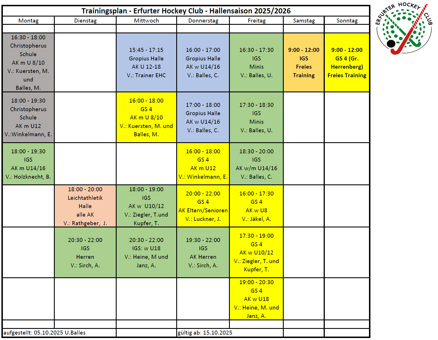 Trainingsplan EHC Hallensaison 2025/26